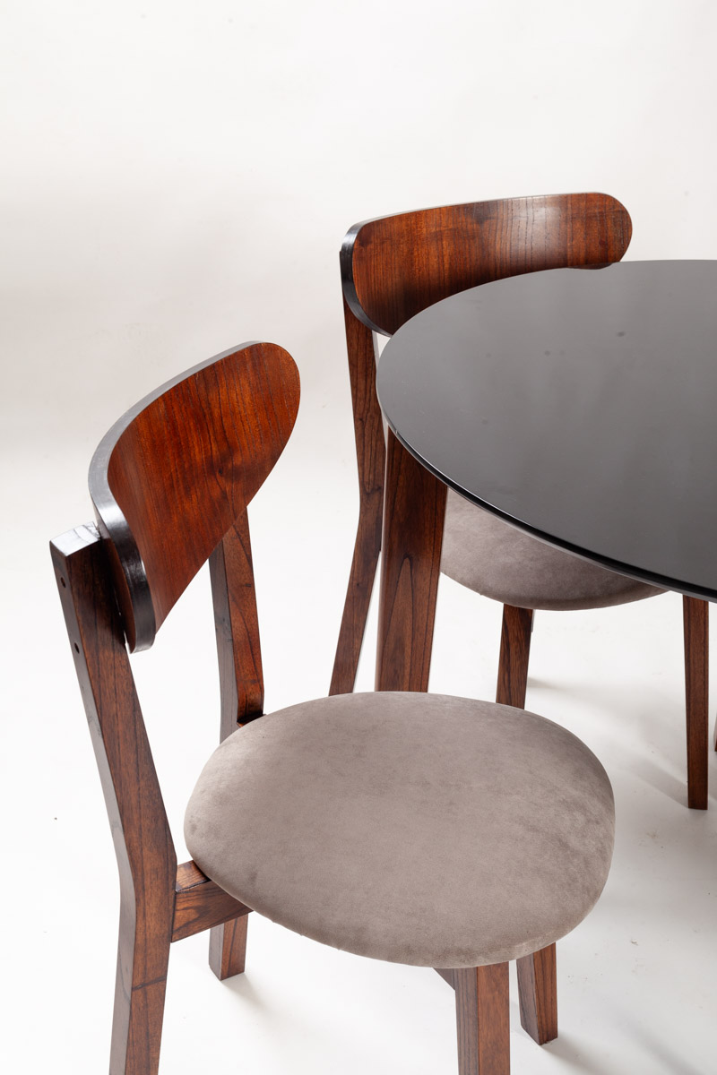 MESA ALTA REDONDA H&M + 4 SILLAS CHERLYN PARAISO OSCURO