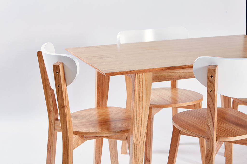 Tapa mesa: Enchapado en madera paraíso de 18 mm con lustre claro.